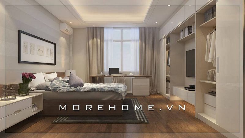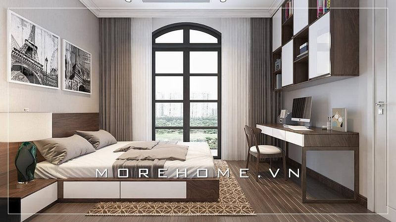 Giường ngủ màu nâu hiện đại trở thành điểm nhấn hoàn hảo cho không gian phòng ngủ chung cư nhỏ
