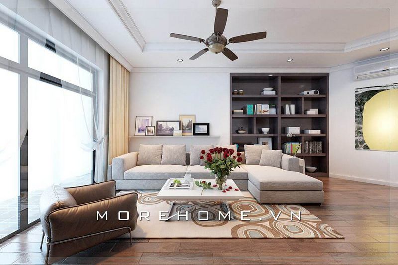Căn hộ chung cư có diện tích nhỏ nhưng vẫn sang trọng và tiện nghi, thoáng đãng. Nội thất bao gồm sofa hiện đại, dáng văng gọn gàng với chất liệu gỗ óc chó cao cấp.